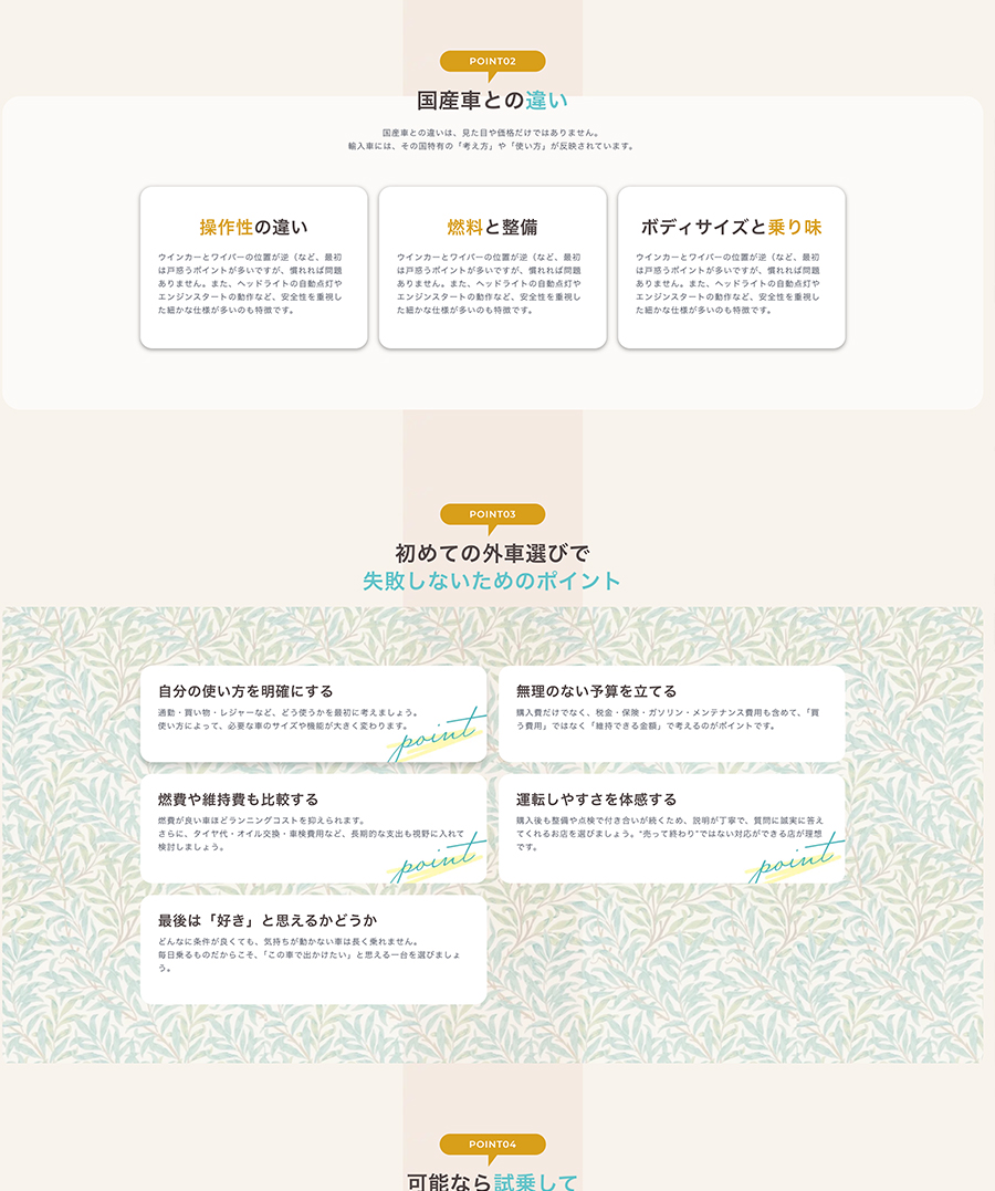 制作領域 ヒアリングと提案/全てデザイン/情報設計/サイト構成ラフ/ライティング/サイトマップ/SEOキーワードマーケティング/HTMLコーディング/WordPress構築/OGP設定/保守運用サポート/更新提案